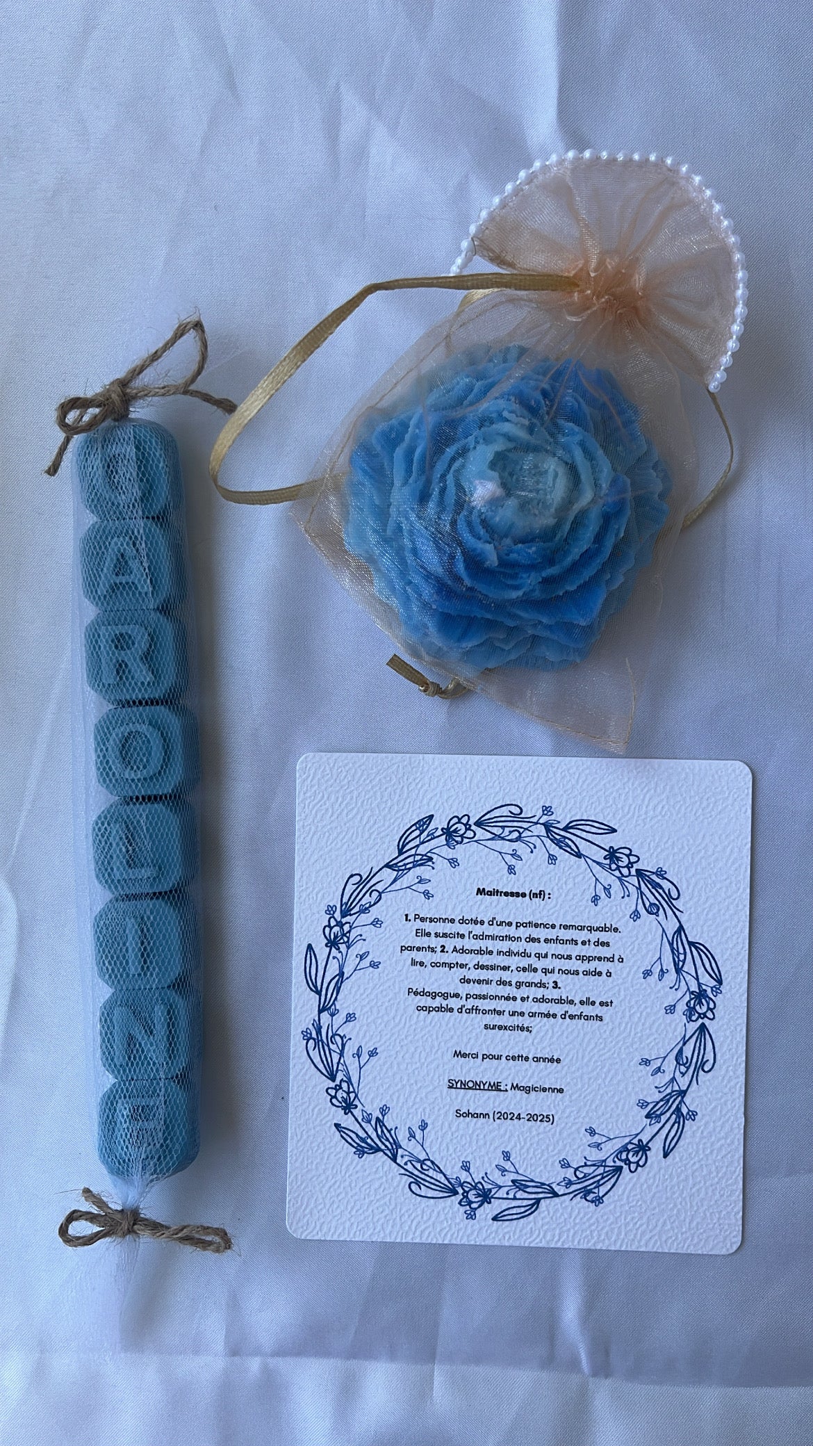 Offrez un cadeau rempli de douceur et de reconnaissance avec notre coffret personnalisé spécialement conçu pour remercier une maîtresse, une ATSEM ou toute personne qui a marqué l'année de votre enfant.
