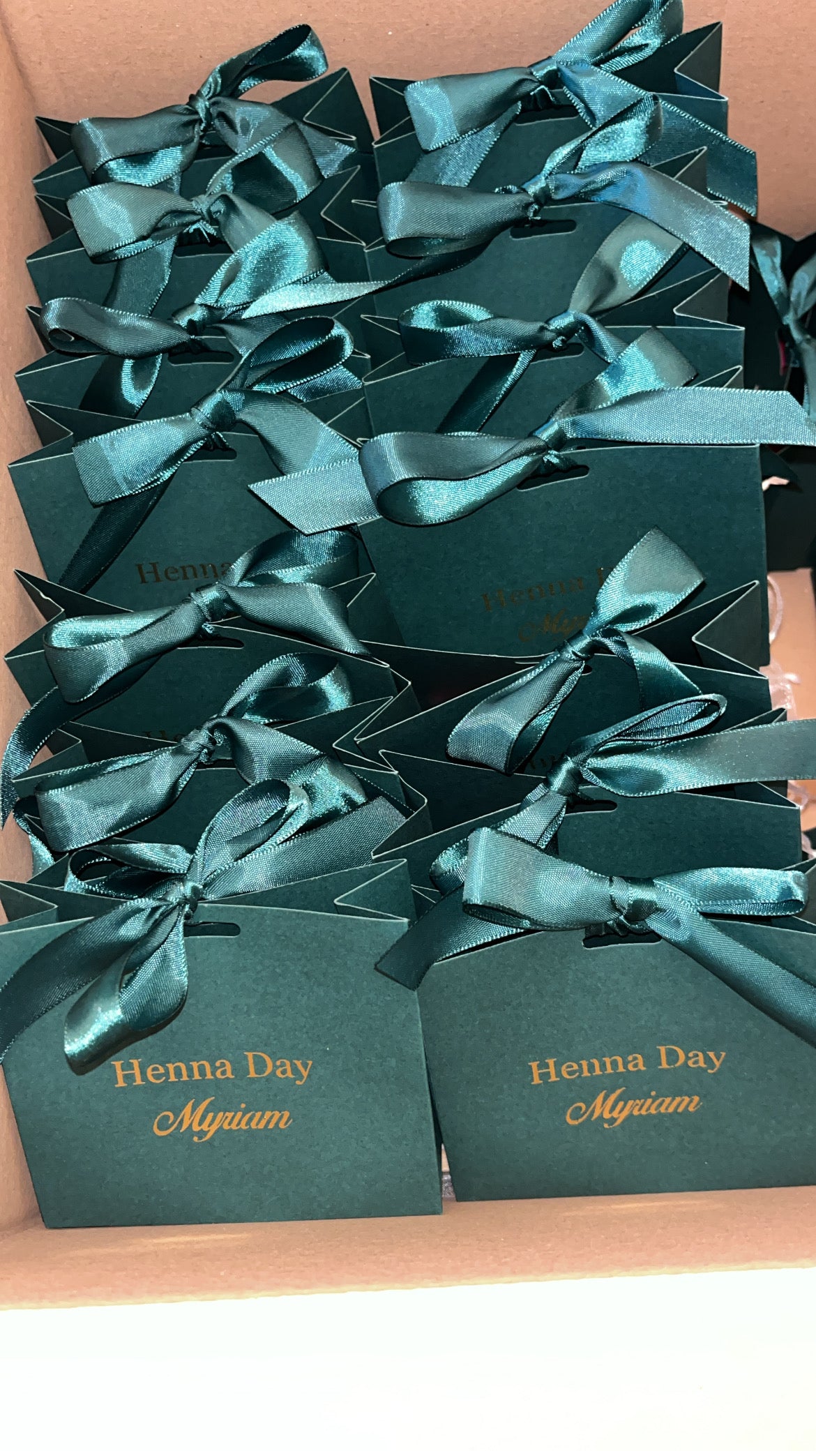 Offrez à vos invitées un joli souvenir de votre Henna Day avec ce sac cadeau vert émeraude garni de délicates attentions féminines.