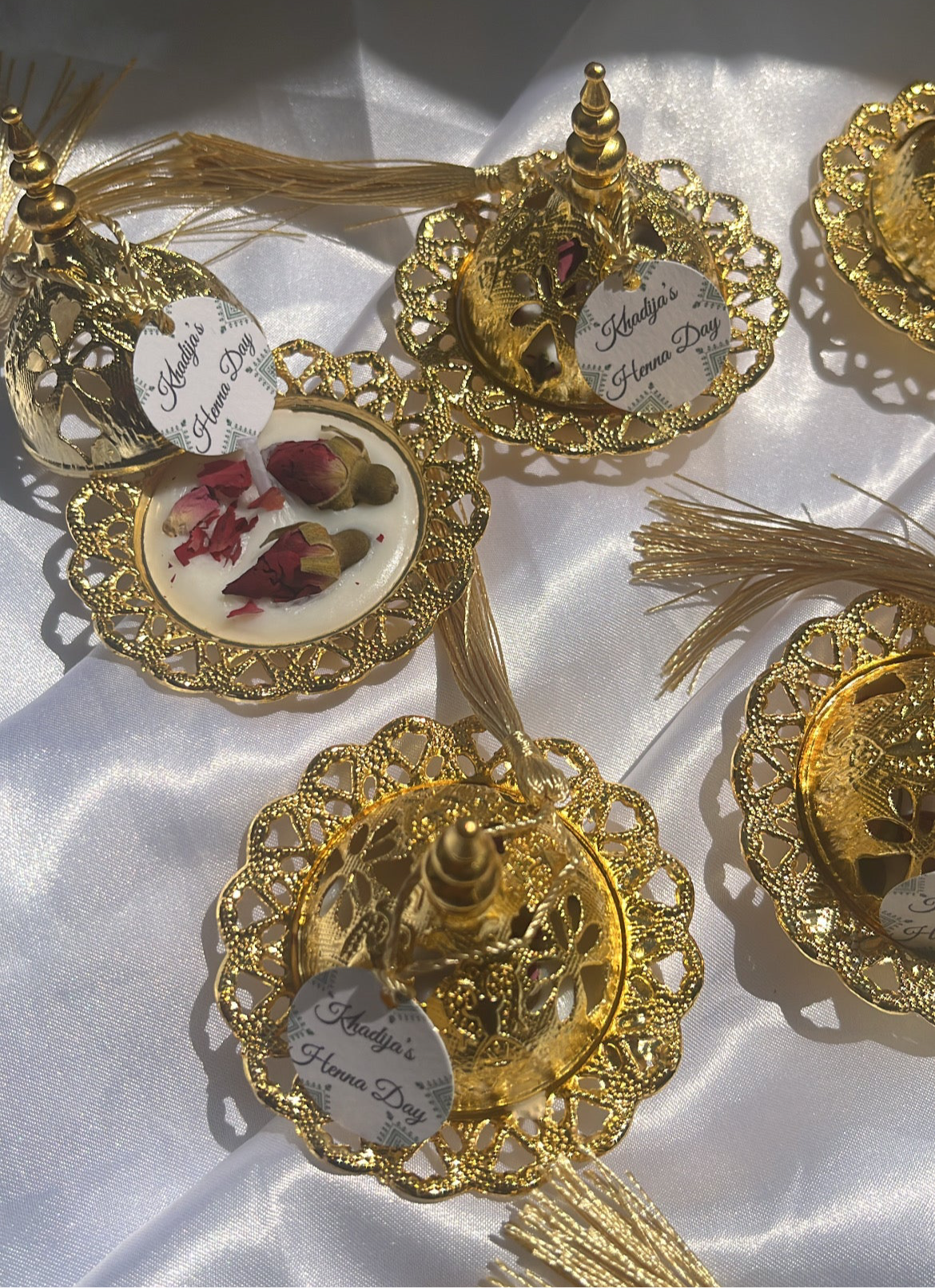 Apportez une touche orientale élégante à votre événement avec ces mini tajines bougies dorés, parfaits pour un Henna Day, hlel, nikkah, ou mariage oriental.